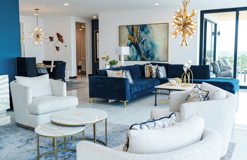 This extraordinary 5,000 sq ft penthouse spans an entire floor and offers a secure elevator lock-out, perfect for guests seeking total privacy, including high-profile travelers. Floor-to-ceiling windows stretch 80 ft across the oceanfront, delivering the most spectacular views on the island. Your private 5,000 sq ft rooftop oasis features a hot tub, full bar, premium sound system, and plenty of lounge space for sunbathing or sunset cocktails. Local bartenders are available for hire to elevate your rooftop gatherings. Inside, enjoy an open-concept living space, gourmet kitchen, and premium sound throughout. Daily housekeeping is provided Monday through Friday, and a 6-seater Polaris is included for exploring the island in style