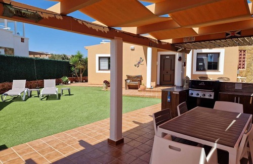 This superb Villa is located in Caleta De Fuste is a 10 minute walk from the beach and shops. It is situated on the Campo De Golf golf course.