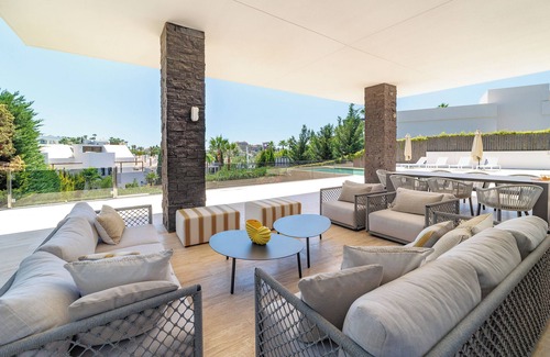 Luxury 5-bedroom villa in pleasant Marbella with pool, AC, cinema room is located in Nueva Andalucia. Luxury 5-bedroom villa in pleasant Marbella with pool, AC, cinema room provides accommodation, featuring Laundry, Air Conditioner, Bedding/Linens, among other amenities. This Villa features Laundry, Air Conditioner, Bedding/Linens, to make your stay a comfortable one.
