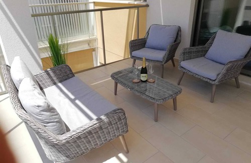 The terrace is very spacious with 20 square meters, with a large table for 6 people and a lounge set for 4.