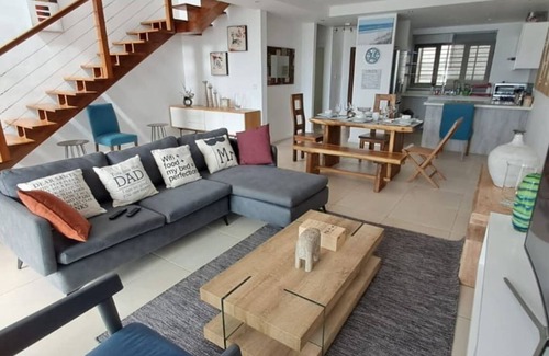 Welcome to our luxury waterfront cocoon! This 3-bedroom duplex offers breathtaking views of Coin de Mire and the northern islands. You'll enjoy your own private pool while having access to a larger pool with a breathtaking view! Plus, take advantage of a special discount of 75€ to play golf at the prestigious Mont Choisy. Your dream stay awaits you in this haven of sophistication and relaxation. Cleaning lady 2 times / week included. Don't hesitate to contact us! Welcome to our sumptuous oceanfront luxury duplex, a three-bedroom paradise where every detail is an invitation to wonder. From the moment you walk through the door, you'll be captivated by breathtaking views of Coin de Mire and the Northern Islands, offered from your windows and private terrace. Each of the three bedrooms is a haven of comfort, carefully appointed to offer you absolute relaxation. Modern amenities blend harmoniously into the elegant interior, while the fully equipped kitchen lets you concoct delicious meals to share with family and friends. But what makes our duplex truly unique is its direct access to the sparkling sea. Imagine waking each morning to the gentle sound of the waves and diving into the crystal-clear waters at any time of day. For underwater adventure enthusiasts, we even provide masks and snorkels so you can discover the fascinating marine life that lurks beneath the surface. And that's not all. As our privileged guest, you'll receive a special discount to play golf at the prestigious Mont Choisy. Just steps from your duplex, this world-renowned course offers you the opportunity to perfect your swing while enjoying breathtaking views. Our duplex is much more than a place to stay, it's a sensory experience and an open door to memorable moments. Book today and immerse yourself in the perfect blend of luxury, relaxation and adventure in the heart of Mauritius. A maid is included in your rate, and a gym open all day is at your disposal. Private parking Private + communal swimming pool Gym GOLF discount WELCOME BY THE OWNER DIRECTLY ON SITE Extra charge : - car rental - Airport cab - Chef - Baby-sitter - Local cuisine - Excursion bookings