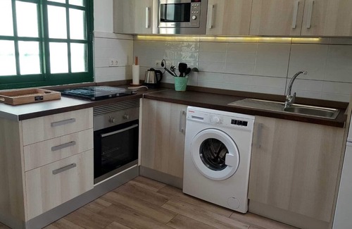 It has 2 rooms with capacity for 4 people, a bathroom, the kitchen is fully equipped and has air conditioning, private garden with sunbeds and barbecue and views of the Dunes and the sea and its own parking.