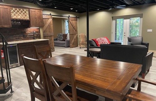 Traveling is a breeze when you stay with us as the lodge is fully equipped with great amenities. Property offers an outdoor hot tub, fire pit, and great quality time. State Parks, lakes, canoe & kayaking, ziplining and so much more all located within a short distance from the property.