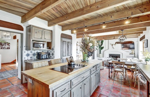 Escape to wine country in this luxury Fallbrook Hacienda — perfect for family vacations, retreats, and private events. Located just 15 minutes from Temecula Wine Country, this 5-bedroom, 4-bath estate offers upscale comfort for up to 12 guests. Highlights include a king suite with Jacuzzi tub, 2 King size bedrooms with fireplaces, 3 queen beds, a full bed, and a queen bed with trundle bed in your own private casita, with full kitchen separate from the main house. Coming June our brand-new pool and jacuzzi will be open 2025!. Pet-Friendly. Ask about our upgrades such as prepared meals,