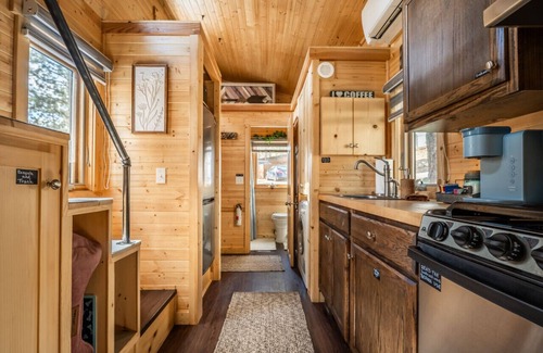 Nestled in Peak View Park, this charming 399 sq. ft. tiny home offers the perfect blend of outdoor adventure and cozy comfort.