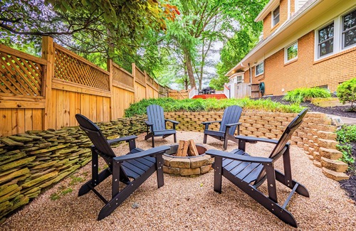 Grand Haven offers a professionally designed luxury retreat and mid century modern charm. Designed for long term stays, its central location is a short walk to the metro, large parks & downtown Vienna. The home is fully equipped as your comfortable home away from home. Work from home in the dedicated office. Cook with high end appliances. Enjoy the magical private yard from the outdoor swing or fire pit. Workout on the Peloton before a family competition on the Nintendo Switch or the arcade.