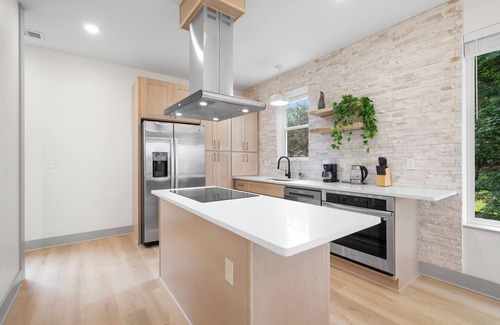 Book now to enjoy this new stylish modern contemporary centrally-located home in West Nashville with 3 bedrooms and 3 bathrooms! Enjoy multi-level living, with a private sauna and a third-floor deck. Fenced & gated shared courtyard. Minutes from most popular attractions (Parthenon, Country Music Hall of Fame & Broadway). Surrounded by many dining options, trendy boutiques, and scenic parks. This home is perfect for corporate temporary housing or an extended Nashville adventure!