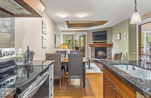 Welcome to the home base of your mountain escape in the Canadian Rockies! Open layout Kitchen/Dining/Living. Highend finishes throughout. Two cozy patios, Master bedroom with king-sized bed and a 5pc en-suite with a soaker tub, and a stand-alone shower. The second bedroom features a queen-sized bed and its own fireplace. Pull-out sofa in the living room for extra guests or movie nights. On-site amenities include an indoor heated pool, hot tub, fitness facility, and heated underground parking.