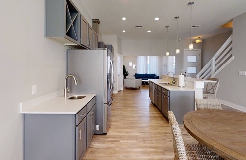Gourmet Kitchen: A fully-equipped kitchen with a 12-cup and single Keurig coffee maker, and two dining areas for family meals.