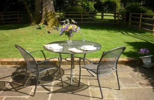 OUTSIDE: At the rear of the cottage is a private enclosed garden with a Kettler dining table and chairs on the patio. Secure, private parking and access to private parkland.