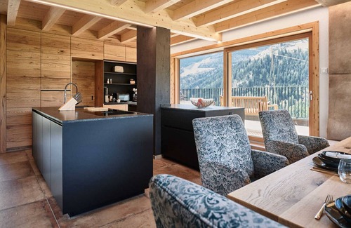 Apartment Serfaus offers luxury for up to 8 people. A huge couch invites you to linger, opposite the fireplace. You come in and feel comfortable with the wood on the ceiling or on the walls and at home. The exclusive kitchen with oven, dishwasher, induction hob and the Illy coffee machine makes them celebrate true gourmet evenings. A washing machine and a dryer is always available. Free WIFI is a matter of course. In the spacious bathrooms with tub or shower you will feel comfortable. You have access to your own 40 m² terrace and the swimming pond.A Raumfeld WIFI speaker in wonderful sound quality sweetens you the day.