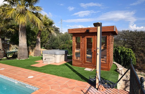 Nestled in the foothills of El Torcal Nature Reserve near Antequera, this nice villa perfectly combines modern amenities with traditional Andalusian charm, offering elegance and comfort in a serene rural setting.The villa has everything you need for an unforgettable holiday: swim a few laps in the pool, play on the private padel court under the radiant Spanish sun, and then unwind in the sauna or hot tub while enjoying the breathtaking views of the El Torcal de Antequera mountains. Whether you're a passionate padel player or just playing for fun, the combination of sport, sunshine, and scenery makes every match a true delight. Ideal for families or groups of up to 7 people, the villa features two rooms with double beds and one room with two single beds, each with its own en-suite bathroom. The cozy open loft also offers a sofa bed. Enjoy shaded terraces in the summer, or relax on the sunloungers near the pool. The villa is also equipped with air conditioning. With underfloor heating and a cozy fireplace, it'salso perfect for winter stays. High-quality furnishings, antiques, a beautiful garden, and a dining terrace with a BBQ complete the experience. Plus, the villa is pet-friendly and it offers internet access throughout.Set on a 42,000 m² plot with olive and citrus trees, the property features a gated entrance and beautifully manicured gardens. Space enough for several cars.The villa is conveniently located just 700 meters from the small La Higuera supermarket, and with Hotel Fuente del Sol only 4 km away for dining options. The historic city of Antequera is a mere 22 km away, and day trips to Córdoba, Sevilla, Ronda, or Granada are easily possible.Embark on an unforgettable adventure with a breathtaking hike along the Caminito del Rey, located just 32 km from the villa. Whether you're a nature lover or thrill-seeker, the Caminito del Rey and El Torcal de Antequera promise a truly memorable experience amidst some of the most dramatic scenery in Spain.Experience the ultimate holiday in Andalusia in this beautiful villa.
