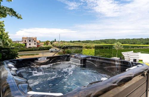 Providing a garden, Luxury Villa Lipa Tree with pool in Novigrad features accommodations in Novigrad Istria. This property offers a private pool, free Wifi, and free private parking. The Euphrasian Basilica is 12 miles away and Poreč Main Square is 12 miles from the villa. Featuring a terrace with pool views, this villa also comes with a satellite TV, a well-equipped kitchen with a dishwasher, an oven, and a microwave, as well as 4 bathrooms with a shower and a hair dryer. The accommodation has a fireplace. Karpinjan Beach is a 10-minute walk from the villa, while Aquapark Istralandia is 3.8 miles from the property.