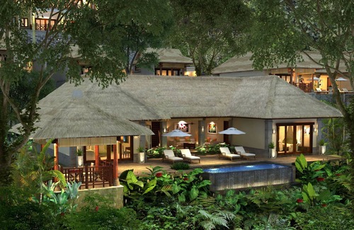 Offering views of Ubud's tropical terrain, the villa tastefully blends contemporary designs with traditional Balinese touches. It's fitted with elegant teak furnishings and local artistry. Amenities include a safe, refrigerated minibar and a flat-screen cable TV with DVD player, while the a lavish bathtub, overhead rain shower and a complete set of toiletries are included in en suite bathroom.