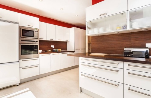 Entrance level: Spacious and comfortable lounge / dining area (suitable for 10 persons), surrounded by large glass sliding windows that provide a sunny atmosphere and impressive views to the pool and the sea, opening to another exterior chill out lounge and dining area with sea views (also for 10 persons), decorated by white curtains, and surrounded by green Mediterranean vegetation. The interior lounge is equipped with a flat screen SMART TV (Netflix is available using your personal account log in - please remember to log out on departure). A beautiful modern and fully equipped kitchen is next to the living area and also opens to the terrace with exterior dining area. Further there are 2 bedrooms with terraces and fantastic sea views, each with en-suite bathroom on this floor.