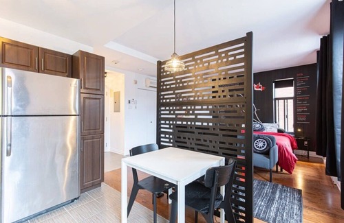 This stylish Formula1 studio apartment in Montreal is steps from top restaurants, shops, and entertainment. Perfect solo travelers or couples, it features high-end furniture and professional design for a relaxing, elegant stay.