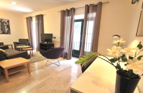 The building is listed and protected by the "Special Protection Plan for the Historic Seville" by what has been observed in the original exterior facades and type of covers, and has recovered the original colors; and its inside has followed the organizational structure, the historicist style and some elements of original construction of the time. Built with quality materials, marble floors, double glazed windows and balconies, hardwood interior carpentry, designer bathrooms, all rooms ... climatizas and equipped with designer furniture and all the necessary items for a comfortable stay of our guests: refrigerator with freezer, microwave oven, washing machine, coffee maker, kettle, toaster, blender, juicer, crockery-cutlery-crystal-battery ..., TV with international satellite channels, free Wi-Fi, bed linen and towels, hairdryer, safe ...
