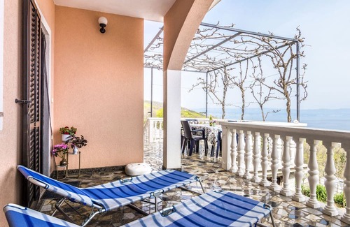"Magdalena", 3-room apartment 56 m2, on the ground floor. Living/dining room with satellite TV and air conditioning. Exit to the terrace. 2 rooms, each room with 1 double bed. Open kitchen (4 hot plates, oven, dishwasher, toaster, kettle, microwave, electric coffee machine). Bath/WC. No heating option. Terrace 18 m2 partly roofed. Terrace furniture, barbecue (portable), deck chairs (2). View of the sea. Facilities: washing machine, mosquito net, baby cot (extra). Internet (WiFi, free). Please note: non-smoking house. Private entrance.