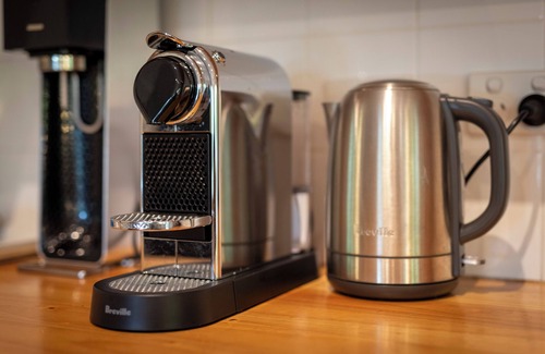 The open plan kitchen is generous, with plenty of space to prepare meals - the space boasts a large kitchen island with a breakfast bar, large sink, and 4 hot plates. The walk in pantry is home to the fridge and copious shelf space for all your goodies. The space is well stocked with appliances such as a full oven, microwave, toaster, kettle, Nespresso pod coffee machine, soda stream, blender, not to mention all the pots, pans, cutlery, and crockery you need for a comfortable stay. A beautiful, old Aga oven is the kitchen centrepiece - but that's just for decoration! The electric oven is much for efficient.
