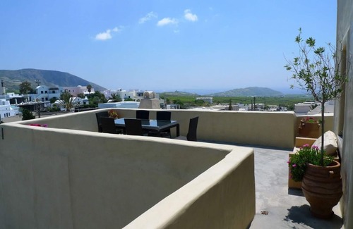 The accommodation is on a hill with a view over the vineyards and the idyllic Megalochori on the island of Santorini in the Aegean. The accommodation is a fabulous refuge for holiday-makers who simply want to relax and absorb the Aegean light, in unique surroundings. The traditional village is not very well-known yet among tourists and so is a hidden gem on the island.