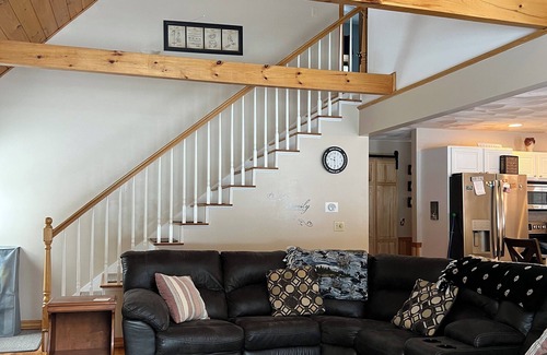 Your next getaway is around the corner at this Maine mountain lodge. this log-cabin style home has plenty of room for you to spread out while still feeling cozy. This is the perfect destination for outdoor enthusiasts and nature lovers. Located just 4 miles outside of the non-commercialized mountain village of Bethel, Maine and just 15 minutes to Sunday River ski area it is the perfect destination in summer or winter. Plenty of land and wooded areas are awaiting your exploration at this ideal retreat for couples and families. You also have the opportunity to take advantage of the Androscoggin River which is ideal for kayaking, canoeing, and fishing. If you need to rent a kayak or canoe, or hire a fishing guide, you can do so in the town of Bethel.