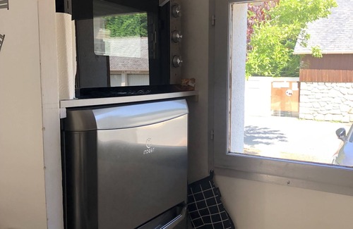 Prepare a home-cooked meal in the kitchenette, complete with an oven, a stovetop, and a refrigerator, as well as a coffee maker, a microwave, and cookware. And because there's access to laundry facilities, you can go a bit lighter on your packing. Other amenities include a dining area, an ironing board, heating, and a dining table.