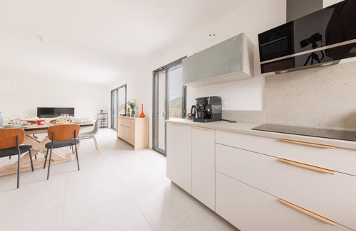 - An open-plan kitchen equipped with: electric kettle, oven, microwave, toaster, dishwasher, hob, Miogot food processor, etc.