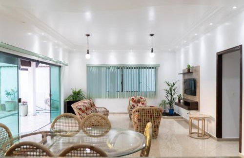 Featuring a garden, MAISON PARTY GUARUJÁ, PRAIA PISCINA SINUCA CHURRASQUEIRA HIDROMASSAGEM provides accommodations in Guarujá. This property offers access to a balcony, a pool table, free private parking, and free Wifi. The vacation home offers an outdoor swimming pool, hot tub, and full-day security. Accommodation for disabled guests is also available at the property. Offering a terrace with garden views, this vacation home also has a cable flat-screen TV, a well-equipped kitchen with an oven, a microwave, and a fridge, as well as 3 bathrooms with a hot tub. The vacation home offers bed linen, towels, and laundry service. For guests with children, the vacation home features an indoor play area, outdoor play equipment, and a baby safety gate. Cycling and fishing can be enjoyed nearby, while a bicycle rental service and a private beach area are also available on-site. Enseada Beach is a 18-minute walk from MAISON PARTY GUARUJÁ, PRAIA PISCINA SINUCA CHURRASQUEIRA HIDROMASSAGEM, while Guaruja Bus Station is 4.7 miles away. Sao Paulo/Congonhas Airport is 57 miles from the property.