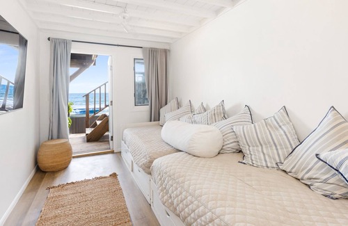 For the ultimate in sophistication and relaxation, experience a luxurious stay in Malibu with 42 feet of beach frontage at this charming ocean oasis! Enjoy the sea breeze and whitewater views from every bedroom – two bedrooms (along with an additional bunk room!) all facing the water – this house comfortably sleeps 6 people.