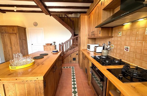 - a beautiful fitted kitchen with central island, hob, oven, fridge freezer, dishwasher, coffee machine, kettle and toaster.