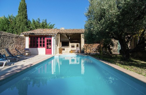 Discover timeless elegance at Château Rieutort, a beautifully restored 18th-century holiday home nestled in the peaceful countryside near Nîmes. Surrounded by vineyards and enclosed within high stone walls, this refined retreat offers a private swimming pool with Roman steps, a shaded pergola terrace, and an 800 m² garden where children can play safely. Inside, the spacious living areas, cozy bedrooms with fans, and a fully equipped kitchen create a warm and intimate setting for a memorable stay.