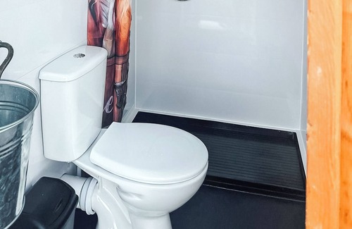 Outdoor private toilet and shower. Compost toilet.