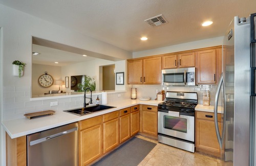 If you’re searching for long-term accommodations in sunny Maricopa, look no further than this well-appointed vacation rental. The 3-bedroom, 2-bathroom home is perfect for families and features all the necessary amenities for worry-free travel. Spend ample time in the backyard, where a heated pool, a covered patio, and comfortable lounge seating await. Plus, the home is located in a golf community, so easily squeeze in those afternoon tee times. This gem has comfort and convenience covered!
