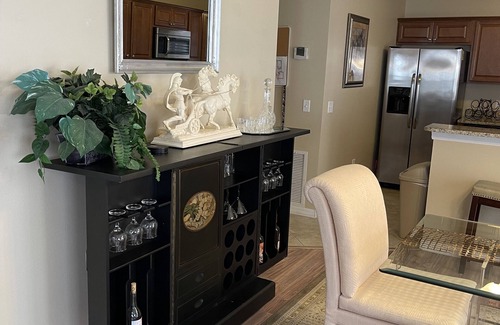 Marilyn’s romantic getaway. Newly remodeled and classically furnished. Reclining sofa and loveseat, fireplace, bar, queen size pillow top mattress. Screened in lanai, with wine chiller on the porch. BBQ grill and lawn furniture. Washer and dryer in the garage, and golf cart available. Classically decorated with opulence that only Marilyn Monroe herself would settle for. This property is located in The Villages, FL. Do you have friends visiting with you? … check out our other properties https://www.vrbo.com/1688783?unitId=2250244