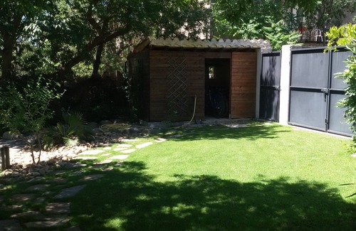 Charming renovated farm. Unique view of the Pic Saint Loup. Countryside in a quiet hamlet. A separate bedroom (2 beds x 90cm), bathroom, toilet, fitted kitchen (oven, fridge freezer, microwave, washing machine, dishwasher), a dining room. organized in upstairs loft with TV, 1 open room (1 bed x160), library, lounges. Internet Access, Phone. Air Conditioning. Shady garden surfing. 200m2 closed, open garden of 200m2. Bicycles. Pool (H130 x 4m x7m)