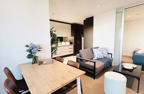 This modern architecturally inspired building is located right in the heart of the CBD , just across the street from Southern Cross Station & Airport Shuttle SkyBus station. Get to the Docklands, Marvel Stadium, Crown Casino just within a walk. It is the premier location for any visit to Melbourne. Within the free Tram Zone, amazing cafes and restaurants, you may never want to leave. With the modern decor, this apartment is the perfect place for couples, solo adventurers, business travellers, and families.