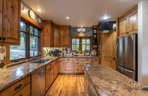 Experience the Truckee Donner area in this beautiful craftsman style mountain home. The house backs up to a meadow within the National Forest providing the feeling of peace and solitude while still being within reach of the many amenities Tahoe Donner has to offer. Tahoe Donner’s adventure center, beach on Donner Lake and Trout Creek Recreation Center (with heated lap pool open year-round) are all within an easy drive. Mountain bike and hike trails directly behind the house. Relax in the hot tub beneath the stars on the back deck. This stunning home makes for the ideal escape for an adventurous vacation in Truckee!
