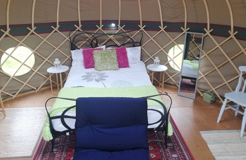Large yurt with pine, lockable stable door and panoramic front view windows