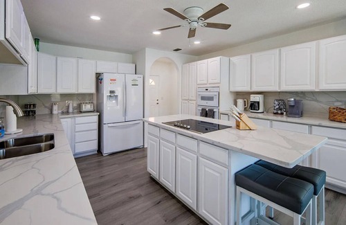 Please do not block the cabanas. There is plenty of parking in the garage, driveway, and a new side spot. Laundry is only available to guests staying 5 days or more. Guests staying 5 days or more receive a mid-stay light clean and laundry service.