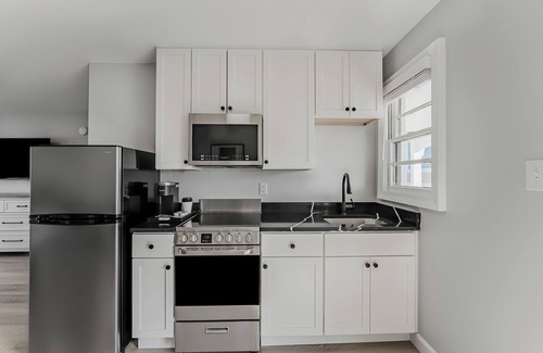 OCEAN SIDE Duplex Apartment with Full Kitchen, One Queen Bed, Steps from Beach