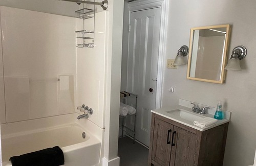 Modest but complete kitchen and dining tables for cooking in. 10 minutes from all beaches and breweries ad attractions Portland has to offer.