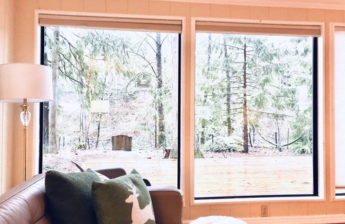 Wi-fi and pet friendly. Large back deck and about 10 stone steps down to the river. Just under an hour from PDX, 10 minutes to Mt Hood National Forest. Easy access for 2 wheel drive and services in Sandy but only 20 minutes to Ski Bowl and 40 to Meadows for fun in the snow with your 4x4!