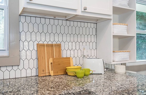 Your home away from home in Durham with 4 lovely bedrooms and a small office area. Pet-friendly in wonderful neighborhood near great shopping, restaurants, and convenient to Duke Hospital and UNC. Enjoy your coffee on the screened porch and the peacefulness of the private backyard. Enjoy cuttings from the gardens! The luxurious primary suite occupies its own floor, with built-ins and fireplace. Primary bathroom has double sinks, expansive counter tops and spacious shower equipped with rainhead shower head. Three bedroom upstairs (or use the 3rd bedroom as a designated office - desk provided). Secondary bathroom has double sinks as well. Beautiful hardwood floors. Located near American Tobacco Trail for walking & biking. Short walk to neighborhood lake where you can enjoy fishing or canoeing or picnicking. Playground at the park for kids and pets! Cook dinner in the beautiful kitchen or on the charcoal grill outside. Thoughtfully and beautifully decorated to provide every comfort.