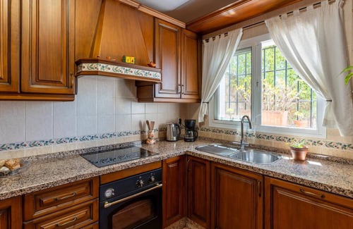 Very comfortable, splendid gardens and lovely views!Families with small children will find this the ideal villa, as the access to the pool area can be closed, yet the kids will still have a spacious lawn area where they can play. Superb views and a convenient location 5 minutes from the village of Mijas and 25 minutes from the Malaga airport lets you enjoy a holiday without complications at this comfortable villa.Location and outside areaTucked away in the hills, this is an intimate and cosy villa with fabulous views, both towards the Mediterranean Sea to the south and towards the sierras to the west. The whitewashed village of Mijas (4.5 km) is just 5 minutes away whilst the sandy beaches of Mijas Costa (12 km) are a 15 minute drive away. The villa is located in Valtocado, a residential area somewhat west of Mijas. Although the surroundings are quiet, the area offer many possibilities for those looking for sports and entertainments. There are a handful of golfcourses at less then 15 minutes drive though Mijas is also popular for tennis, horseriding, hiking and cycling. The kids will certainly enjoy the Mijas waterpark, the Fuengirola Zoo, Sealife in Benalmádena or the Selwo Safari park near Estepona.There is a gated entrance to a parking area leading to the front door. Next to and behind the house, you’ll find beautiful mature gardens with lawn. The attractive private pool (7 m x 3,5 m ; 1.10 m - 1.70 m deep) is set in a fully fenced area to provide protection for families with smaller children. For your alfresco dinners, this property is provided with patio furniture and a built-in barbecue with a work top, water, and power supply.Inside and lay-outAll rooms are conveniently set on the ground floor with comfortable furniture in a classic style. From the parking area, the front door opens into the living/dining room furnished with 2 sofas, a wood burning stove, a dining table for 6, Smart satellite-TV, DVD player and a radio/CD. A door opens onto the garden with lawn. The adjoining kitchen is well equipped and features a 4 ringed ceramic hob, fridge/freezer, oven, microwave, washing machine, and dishwasher. There is a master bedroom with an ensuite bathroom, shower, washbasin, and WC. The two other bedrooms are twins, one with an ensuite shower room, the other with an adjoining family shower room with all amenities.Notes:- A WiFi Internet connection is available (free of charge).- Pool towels are provided free of charge.- Air conditioning is available throughout the house; it is included in the price during the winter months and is optional from June 1st to September 30th at a rate of 70 EUR per week (payable locally).