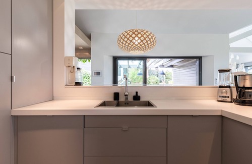 MILADY has been built on three different floors you’ll therefore need to go up and down the stairs to go from the main living area to the bedrooms. You dream of true relaxation ? The inviting indoor lounge area with the fireplace will do that for you as well as offering you amazing views over the quiet neighborhood of Milady. The kitchen of this unique holiday rental is open onto the main living area and is fully equipped ! You’ll love to cook delicious meals for friends and family with our great Basque produce.