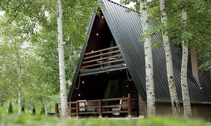 We are a vacation destination that consists of three A-frame cabins. Relax in this spacious, elegant mountain villa. The villa itself has two bedrooms on the first floor with double beds and a terrace in each bedroom, while on the ground floor there is a large living room, a kitchen with dining table for six people and a bathroom.