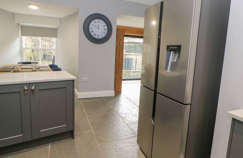 Amenities: Gas central heating. Range cooker with electric oven and six-ring gas hob, microwave, American fridge/freezer, washing machine and dishwasher. Smart TV and WiFi. Fuel, power and starter for open fire inc. in rent. Bed linen and towels inc. in rent. Travel cot and highchair available on request. Off-road parking for 2 cars. Lower-ground-floor, riverside decking with picnic table and side patio with bistro table. Two well-behaved dogs welcome. Sorry, no smoking. Shop 0.4 miles and pub 0.8 miles. Note: There are stone steps down to the lower-ground-floor decking or it can be accessed from the patio doors. Note: A river runs along this property, children and dogs must be supervised at all times