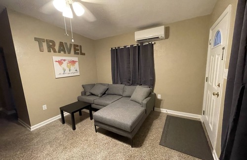Two bedroom, one bath 1/2 duplex in prime area of Orlando. Big bedroom has queen bed. Smaller bedroom has a twin and a full bed. Blackout curtains on all windows. Quiet area. A/C. Internet, Wifi, Streaming tv. Big screen tv. Full standard kitchen.
