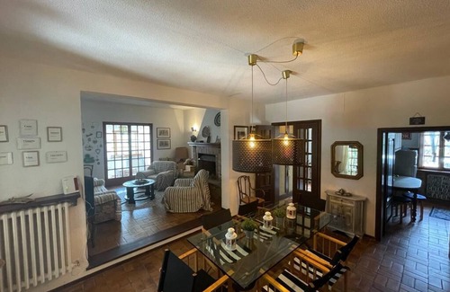 The sleeping area, which is connected by a wooden staircase from the living room on the first floor, consists of three large double bedrooms and two new bathrooms with shower cubicle, toilet and bidet. Typical Tuscan antiques were cleverly combined with tasteful modern furniture. A house to feel good and large families will find space to play and have fun, and there is enough space to relax. Central heating is available in the house so that it can also be used in the off-season. Parking space is on the fenced property. Next to the house there is also a brick grill and an outside seating area to enjoy the mild evenings in summer. There are also garden loungers. Dogs are welcome and can enjoy the large fenced property.