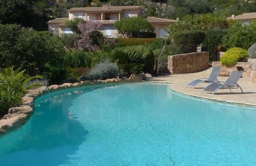 Mini-villa 1 bedroom about 55m², spacious and comfortably furnished. Panoramic sea view. Built in a quiet and relaxing, the rental has an equipped kitchen (fridge / freezer, dishwasher, oven, microwave, coffee maker, Nespresso, kettle.) A washing machine, a living room with flat screen and sofa bed, a bathroom and a terrace with electric barbecue. Heated pool from April to November. Closed private parking.